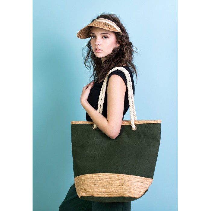 Ευρύχωρη με εσωτερική επένδυση και δύο τσέπες κλείνει με φερμουάρ στο πάνω μέρος.